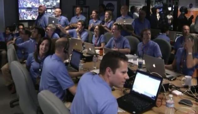 Η επιτυχία χαιρετίστηκε με θορυβώδεις επιδοκιμασίες στο κέντρο ελέγχου  Jet Propulsion Laboratory της Nasa. Μια επιτυχία που όπως μπορείτε να δείτε και στην φωτογραφία βασίστηκε και σε πολλά MacBook Pro!