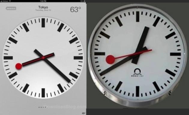Published by iPhoner on 2012, Νοέμβριος 12 - 14:04Τον περασμένο Σεπτέμβριο η Apple μηνύθηκε από την Ελβετική Ομοσπονδία Σιδηροδρόμων για αντιγραφή και χρήση χωρίς άδεια του σχεδιασμού του ρολογιού των Ελβετικών Σιδηροδρόμων στην iOS 6 εφαρμογή Clock του iPad.