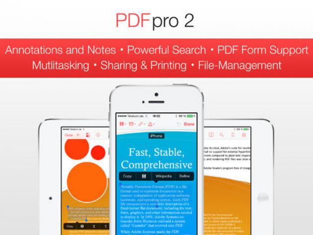 Μία νέα βελτιωμένη έκδοση εφαρμογής αποτελεί το PDF Pro 2. Η συγκεκριμένη εφαρμογή σας δίνει τη δυνατότητα να διαβάζετε, επεξεργάζεστε και να προσθέτετε σχόλια στα PDF αρχεία σας, εύκολα και γρήγορα, μέσα από το iPhone και το iPad σας. Πέραν των κλασικών όπως η πρόσθεση σχολίων και η υπογράμμιση κειμένου, μπορείτε να τοποθετήσετε σχήματα, να ζωγραφίσετε με το δάχτυλό σας και να προσθέσετε φωνητικές εγγραφές και σχόλια υπό μορφή εικόνων.